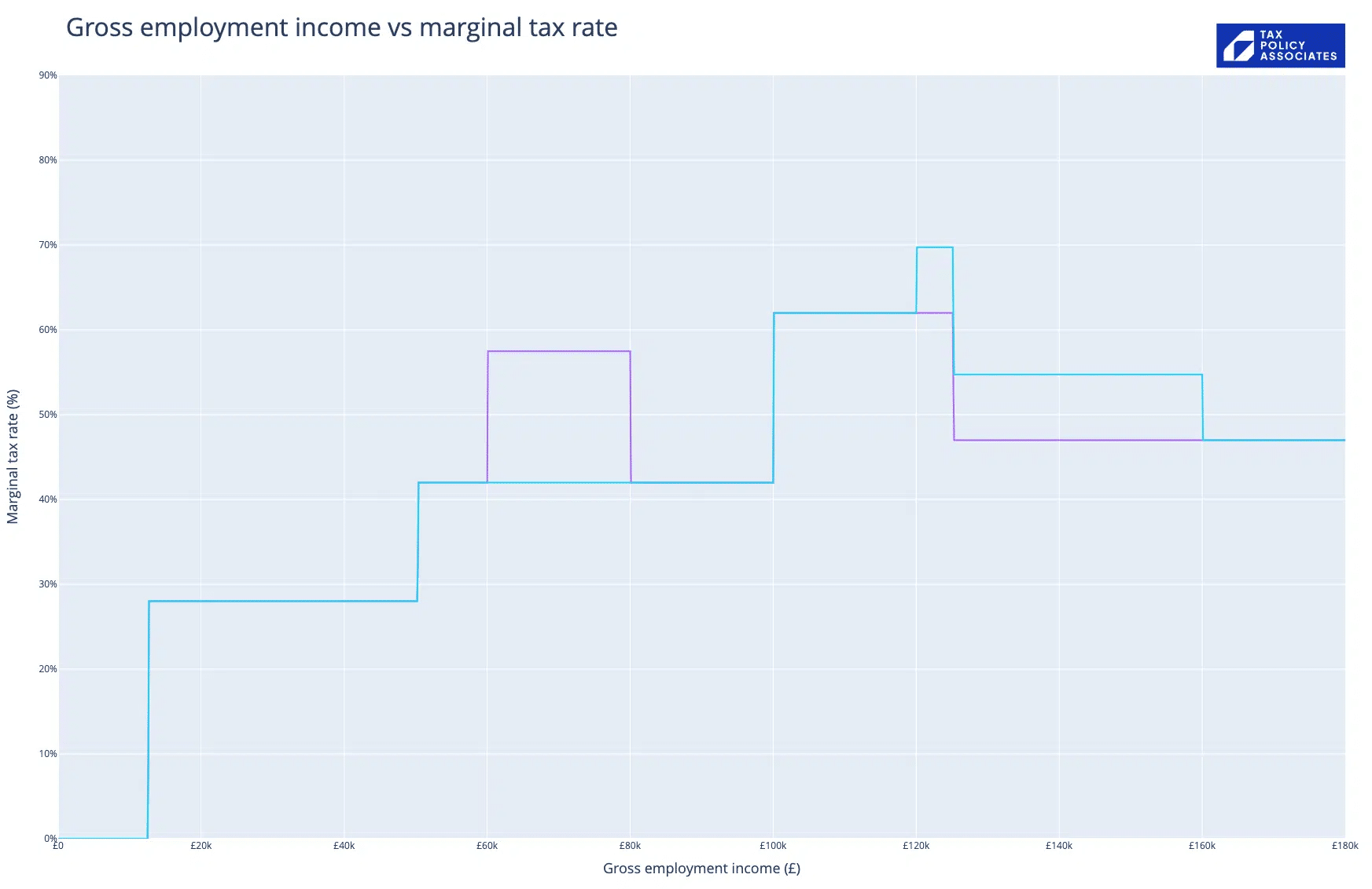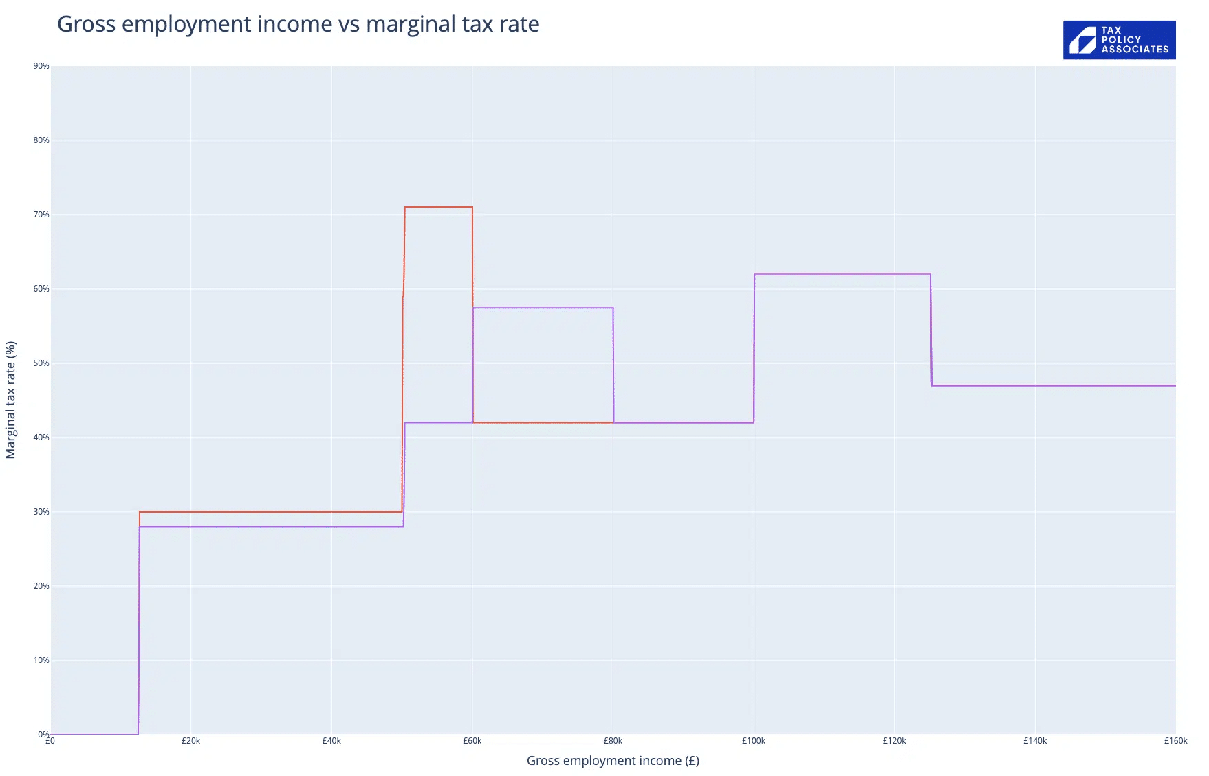 And the manifesto itself falls into a tax trap our broken tax system creates. A proposed change to child benefit tax accidentally creates a new marginal rate of 70% for a parent earning £120k who has three children under 18.