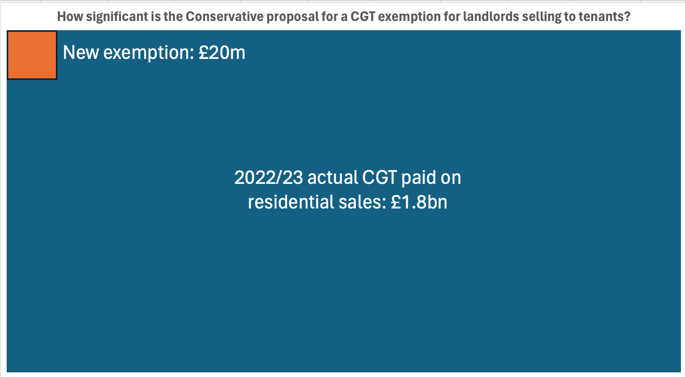 This sounded significant until we looked at the costings – the cost this measure is put at just £20m. That means it is almost irrelevant in the context of total CGT on residential property sales: