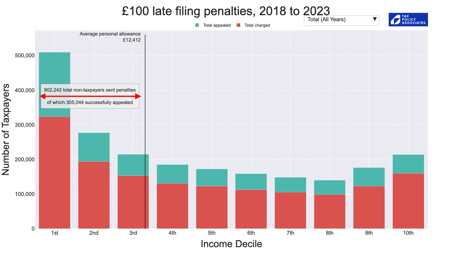 Over the past five years, HMRC have issued around 600,000 late-filing penalties to people whose incomes are too low to owe any income tax at all. Far more penalties were issued to people too poor to pay tax than to those in the top income deciles: