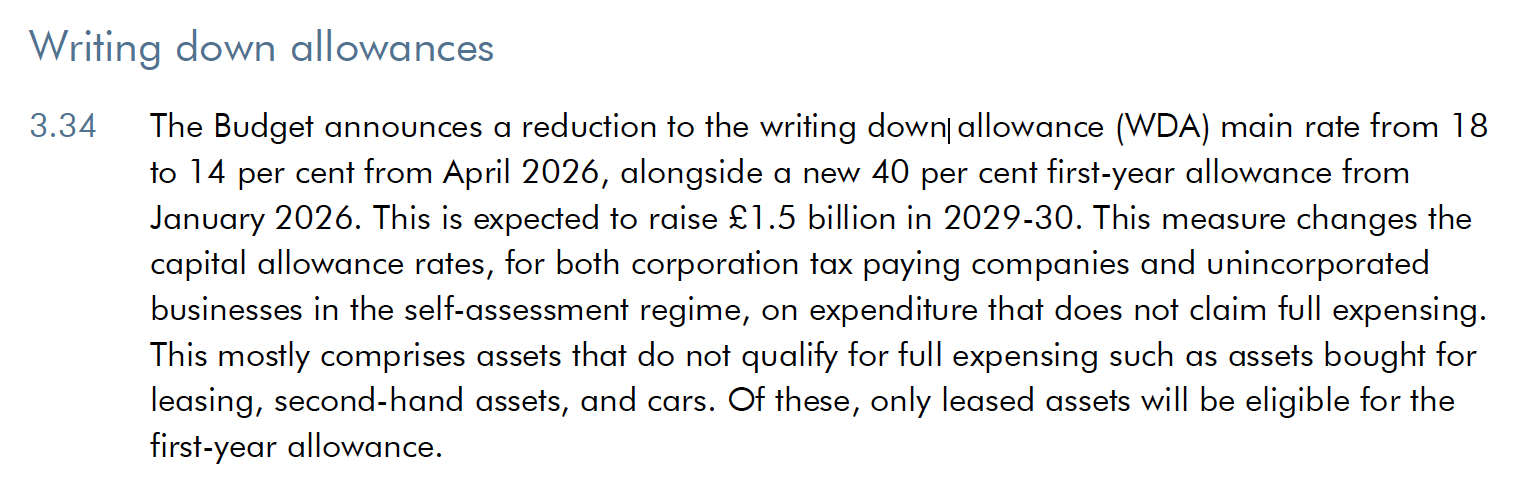 Eighth, a reduction in writing-down allowances, which allow businesses to claim tax relief when they buy capital items. There’s “full expensing” (immediate complete tax deduction) for plant and machinery, but some items don’t qualify, and must be written off over time (perhaps the most important example is second-hand/used plant and machinery). This change slows down the rate. It will therefore (at the margin) reduce investment in such items.