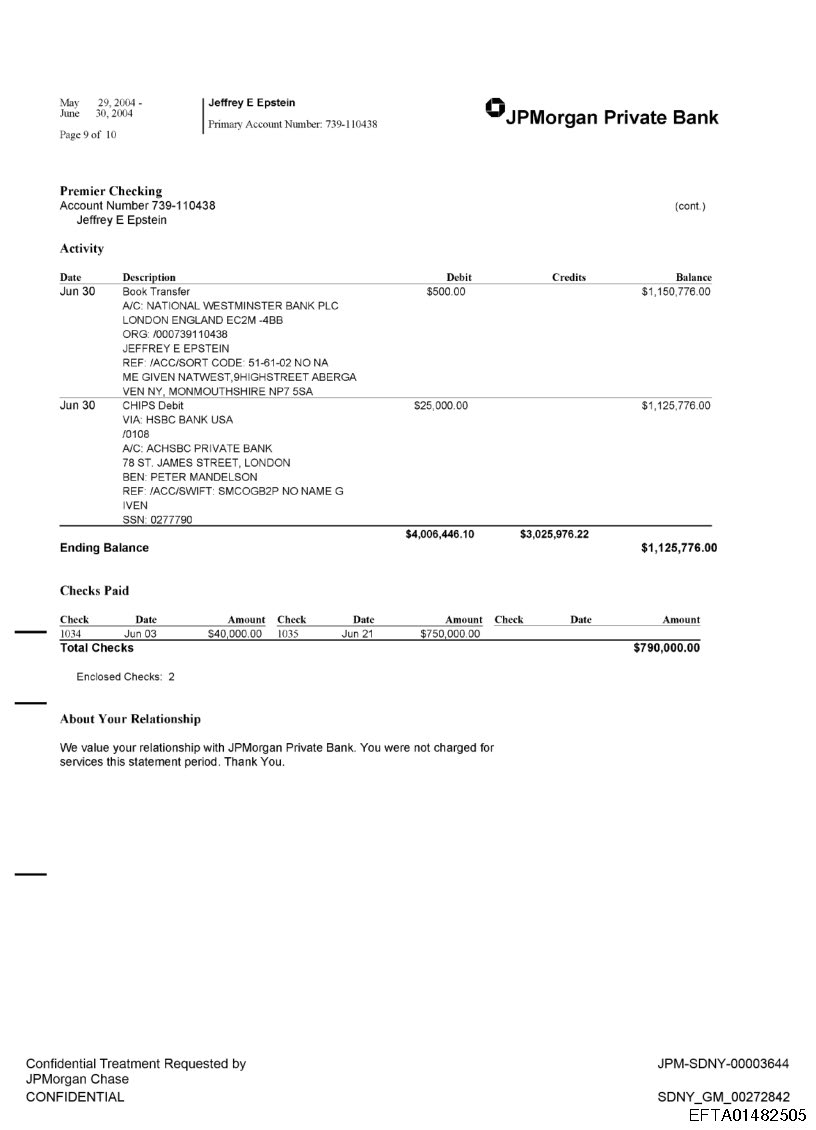 The Epstein files contain three bank statements, from 2003 and 2004, showing three transfers of $25,000 to Peter Mandelson: