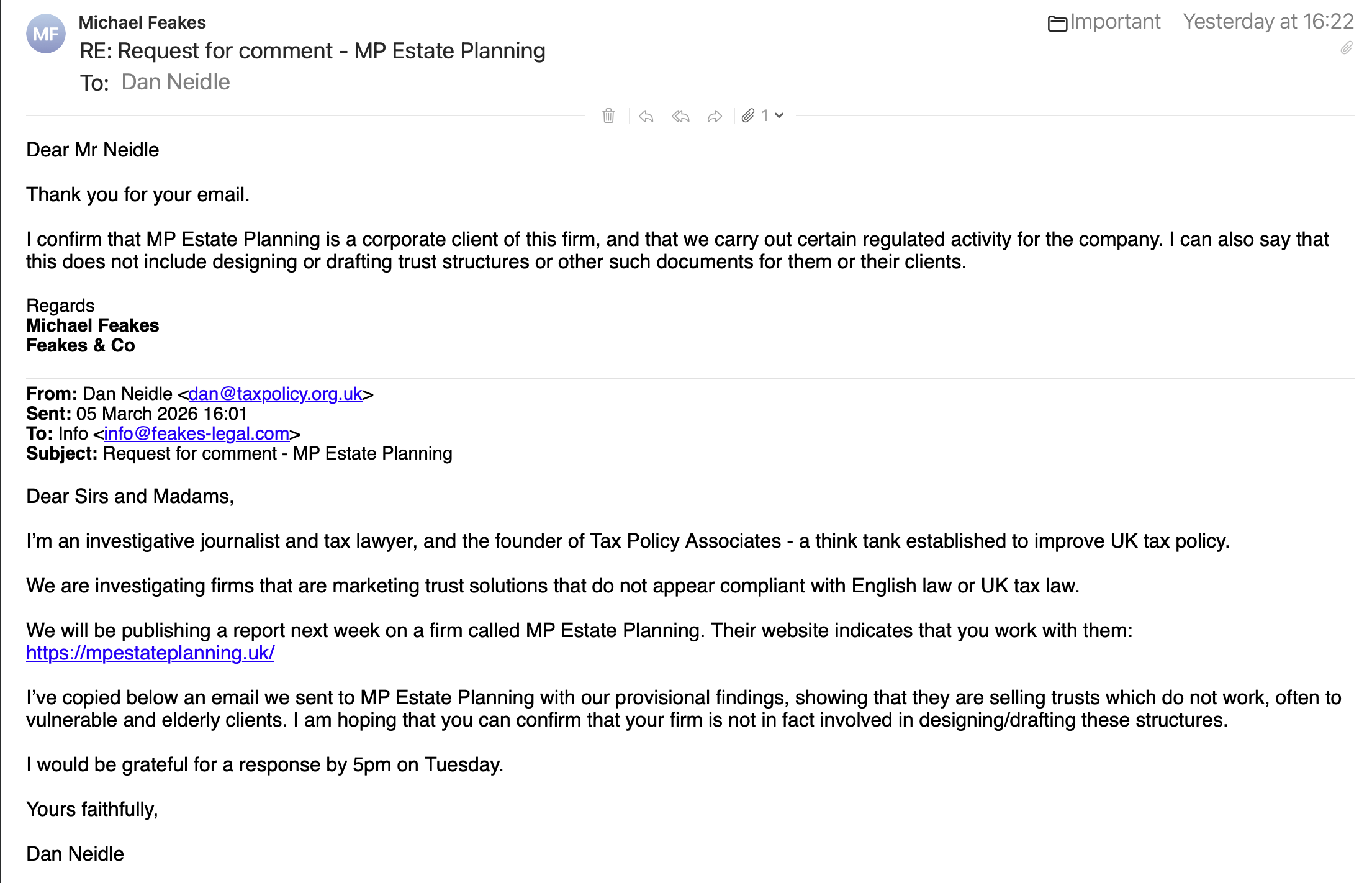 And then, after MP Estate Planning acknowledged receipt: