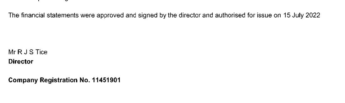 - The front page of the accounts shows that the Tisun companies had no auditor – the only person who signed the accounts was Mr Tice: