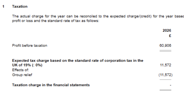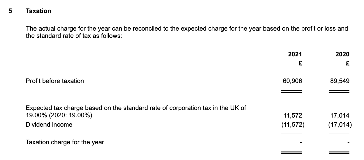 Here’s Tisun Three Limited’s tax reconciliation from its 2021 accounts (the tax reconciliation shows how you get from the profit in the accounts to the tax charge).